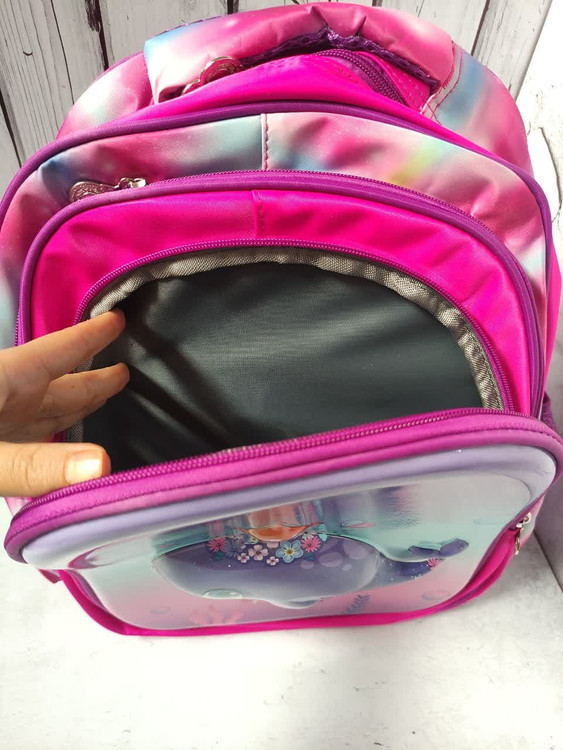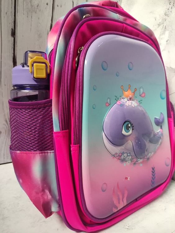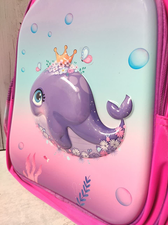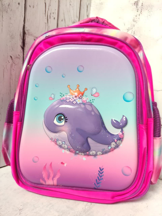 کوله پشتی مدرسه دخترانه وارداتی سه بعدی طرح دلفین دارای سه عدد زیپ روی کار ، دو عدد جای قمقمه ، بند عرق گیر و طرح سه بعدی فایبر گلاس ، ضمنا قابل شستشو نیز می باشد .