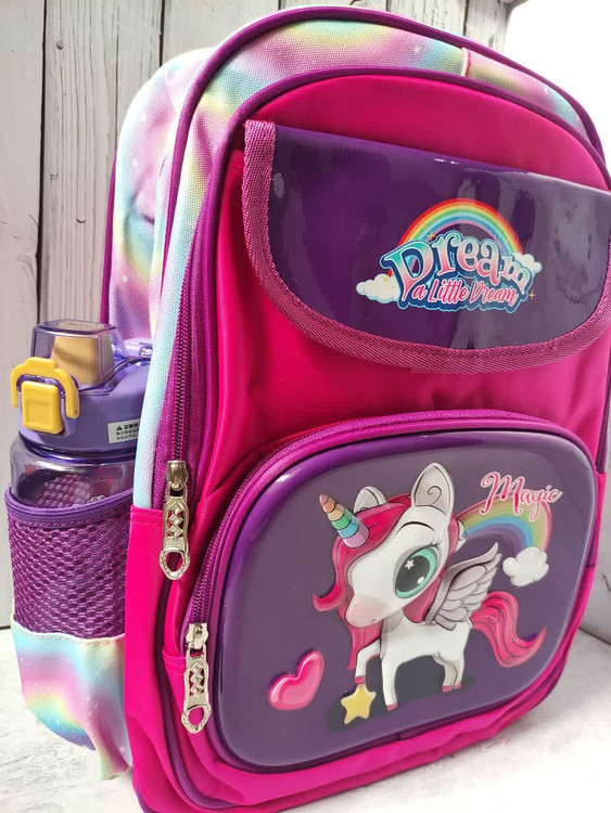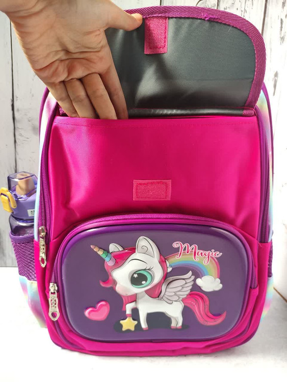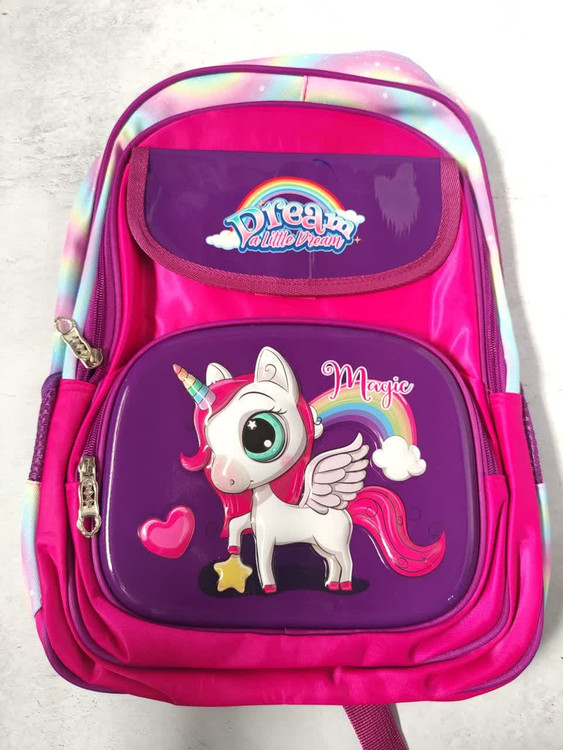 جزئیات: کوله پشتی مدرسه دخترانه وارداتی سه بعدی طرح یونیکورن دارای سه عدد زیپ و یک عدد جیب بزرگ روی کار ، دو عدد جای قمقمه ، بند عرق گیر و طرح سه بعدی فایبر گلاس ، ضمنا قابل شستشو نیز می باشد .