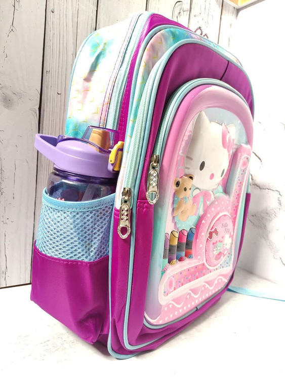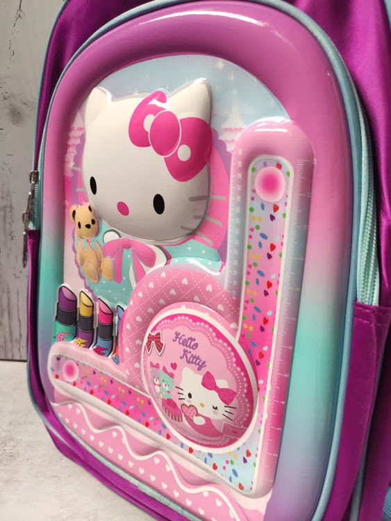کوله پشتی مدرسه دخترانه وارداتی سه بعدی طرح کیتی دارای سه عدد زیپ روی کار ، دو عدد جای قمقمه ، بند عرق گیر و طرح سه بعدی فایبر گلاس ، ضمنا قابل شستشو نیز می باشد .