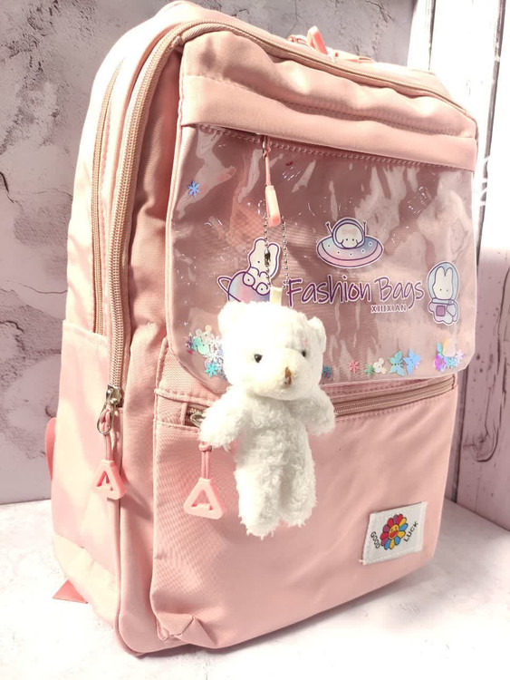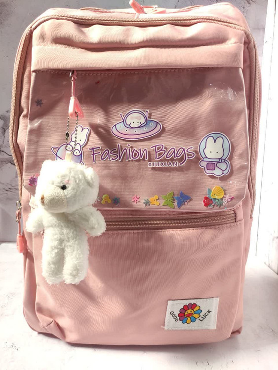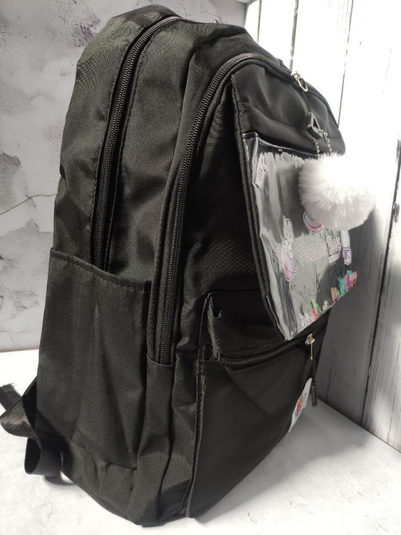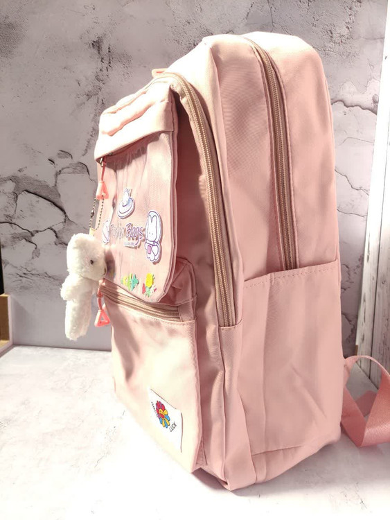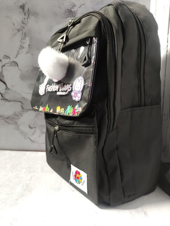 دارای سه عدد زیپ روی کار ویک زیپ پایین کار ، دو عدد جای قمقمه ، بند عرق گیر و طرح آکواریومی جلوی کار به همراه آویز ، ضمنا قابل شستشو نیز می باشد .