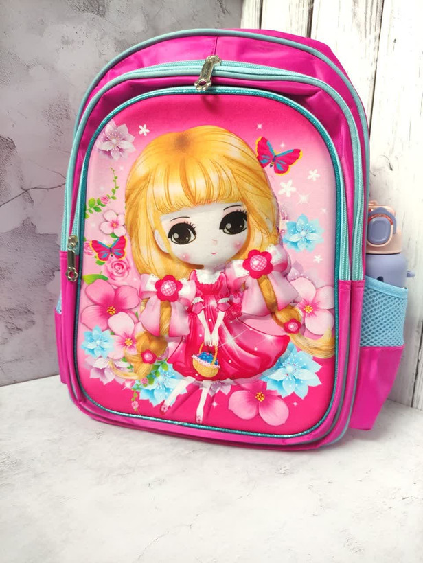 کوله پشتی مدرسه دخترانه وارداتی سه بعدی طرح برجسته گلناز